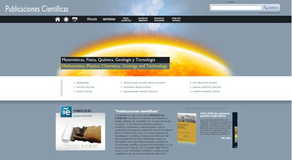 El propósito de este nuevo portal MIENCICLO CIENCIAS, es ofrecer a nuestros suscriptores un amplio catálogo de novedades con la intención de dar a conocer, a los diversos colectivos sociales y científicos, nacionales e internacionales, toda la producción investigadora publicada durante los últimos años en instituciones como el Consejo Superior de Investigación Cientifica a través de la Editorial CSIC. Esta recopilación de títulos distribuidos entre las principales ramas del saber pretende contribuir al conocimiento científico, al desarrollo tecnológico y a la comunicación cultural. Con un simple “clic” tendrá acceso a los contendidos científicos y publicaciones respaldadas por las más prestigiosas editoriales.